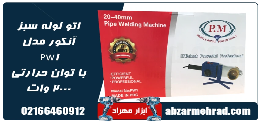 اتو لوله سبز آنکور مدل PW1 یک دستگاه جوش لوله پلیمری 2000 وات با دو المنت قدرتمند، ترموستات دقیق و متعلقات کامل برای لوله کشی ساختمانی است.