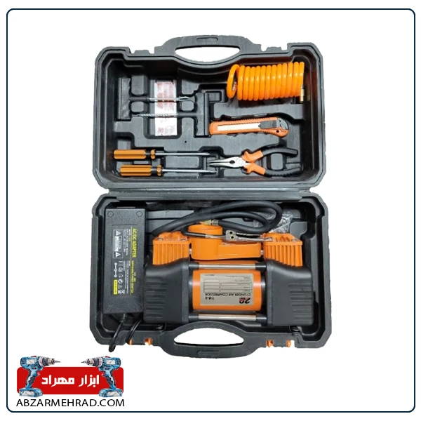 کمپرسور باد فندکی و برقی بیست مدل TM9 یک دستگاه دو سیلندر با موتور تمام مس، فشار 150 PSI و قابلیت استفاده با برق شهری و فندکی خودرو است که برای مصارف خانگی و عمومی طراحی شده است.
