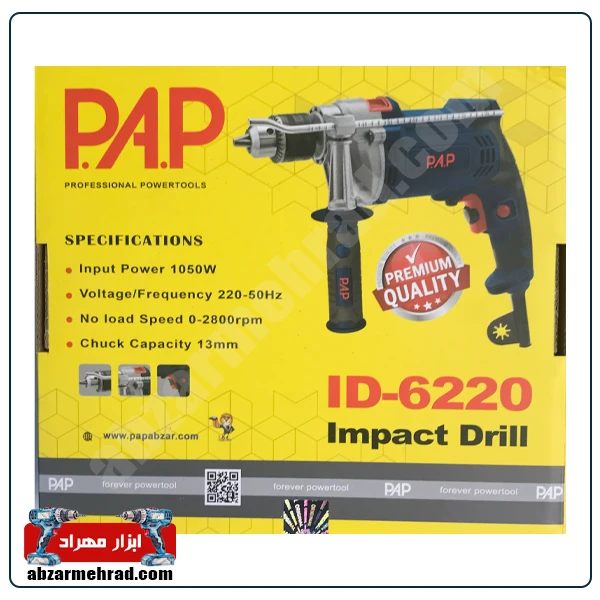 دریل چکشی گیربکسی پی ای پی مدل ID6220 يک ابزار قدرتمند براي پروژه هاي نيمه صنعتي است و از موتور 1050 وات، سرعت ديمر دار و سه نظام 13 ميلي متري بهره ميبرد. وجود دسته کمکي ارگونوميک، توان سوراخکاري در چوب، فلز و بتن و طراحي مقاوم بدنه باعث شده اين مدل براي کارهاي سنگين و طولاني مناسب باشد. اين دستگاه همراه با گارانتي 12 ماهه شرکت PAP از طريق ابزار مهراد عرضه ميشود و انتخابي قابل اعتماد براي مشتريان حرفه اي محسوب ميشود.