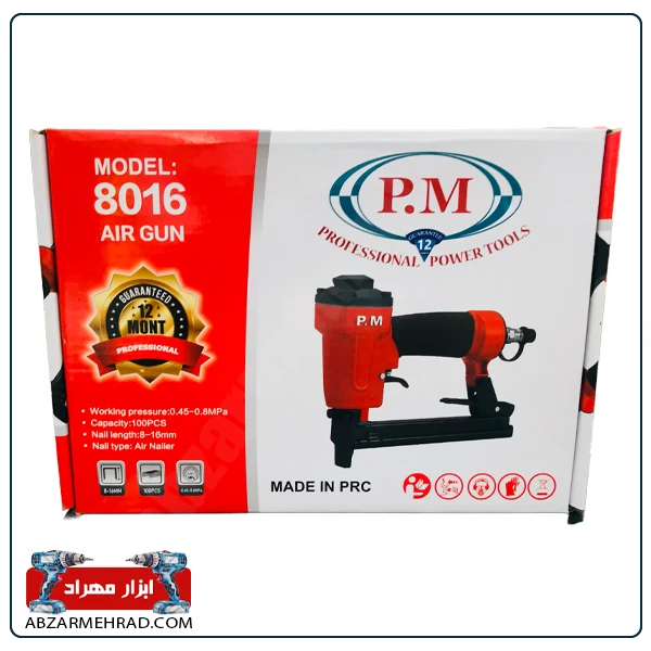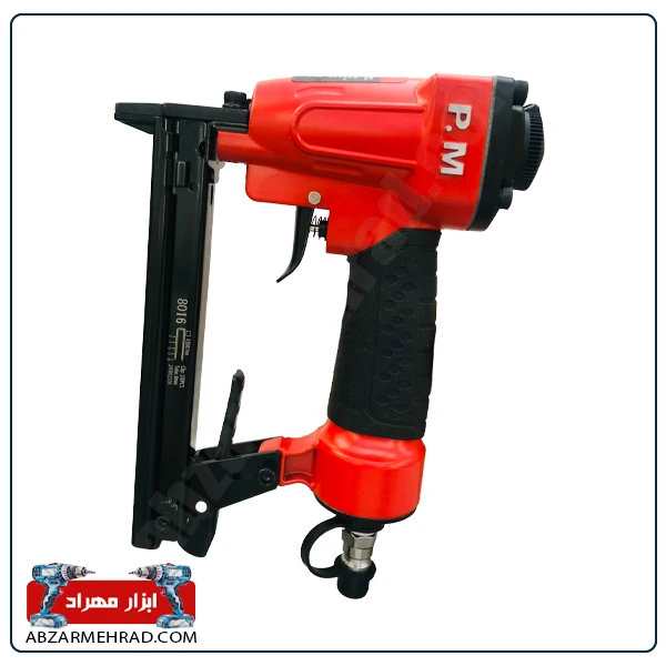 منگنه کوب بادی پی ام مدل 8016 با وزن سبک، فشار کاری 60 تا 100 PSI و طراحی ارگونومیک، انتخابی ایده آل برای نجاری، رویه کوبی و کارهای کارگاهی است.