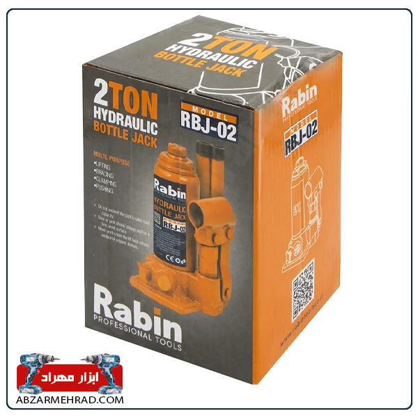 جک روغنی رابین 2 تن مدل RBJ-02 یک جک هیدرولیک سبک و جمع و جور برای بلند کردن خودروهای سواری و انجام تعمیرات روزمره در تعمیرگاه و منزل است.